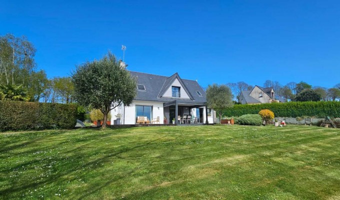 Quimper, sur la route des Plages, cette Contemporaine Familiale dévoile une atmosphère Chaleureuse avec Piscine Chauffée 4×8. Dès l’entrée, portée par de Beaux Volumes Baignés de Lumière et une vue dégagée sur la campagne environnante. Implantée sur un terrain paysagé de près de 2800 m², elle offre un parfait équilibre entre confort moderne, intim...