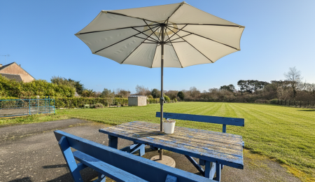 Sur la Commune de Saint Jean-Trolimon, dans un joli jardin clos et paysagé, déco...