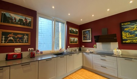 Au rez-de-chaussée, les colocataires partagent de superbes espaces communs : un salon séjour lumineux avec cuisine aménagée et entièrement équipée (four, réfrigérateur, cave à vin, machine à laver, micro-ondes, plaque à induction, hotte, lave-vaisselle). Ces espaces peuvent être utilisés de manière très ponctuelle par les propriétaires pour quelques réunions professionnelles, avec information au préalable par ceux-ci, garantissant ainsi tranquillité et organisation. Bien entendu, les colocataires disposent librement de l’ensemble des espaces communs au quotidien.