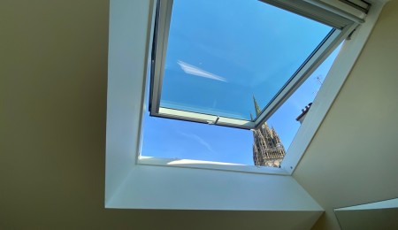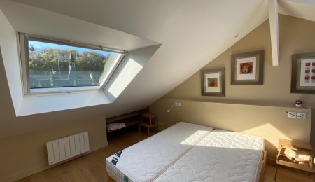 A LOUER. Découvrez une opportunité de COLOCATION RARE au cœur d’un cadre de vie exceptionnel. Au sein d’un appartement T3 en duplex (dernier étage avec ascenseur), une chambre est disponible pour une colocation de deux personnes. Cette chambre bénéficie de sa salle d’eau privative, tandis que les WC séparés se trouvent sur le palier du premier niveau de l’appartement. Depuis votre lit, vous profiterez d’une vue imprenable sur la majestueuse Cathédrale Saint-Corentin, et depuis la seconde fenêtre, vous admirerez les quais de l’Odet — un environnement aussi apaisant qu’inspirant au quotidien.