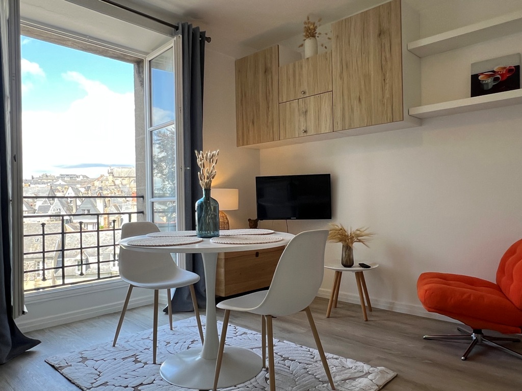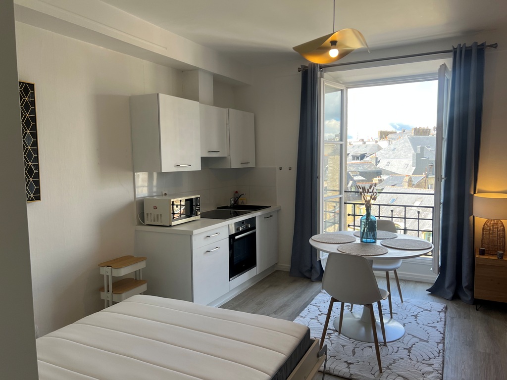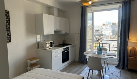 À louer – Disponible à partir du 01/01/2026 – Quimper, centre-ville Situé en plein cœur du centre-ville de Quimper, ce charmant appartement T1 meublé offre un cadre de vie confortable et fonctionnel. Il se compose d’une entrée ouvrant sur une agréable pièce de vie, intégrant un espace nuit équipé d’un lit escamotable, permettant une circulation fluide et une optimisation optimale de l’espace selon vos besoins. Vous disposerez également d’une cuisine fonctionnelle comprenant un four, une plaque de cuisson, un micro-ondes et une hotte, ainsi que d’une salle de bains avec WC. Entièrement pensé pour optimiser chaque mètre carré, cet appartement allie praticité et confort, idéal pour une personne seule ou un pied-à-terre en centre-ville.