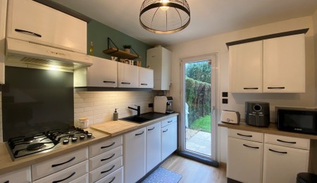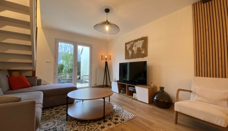 Elle vous propose une entrée baignée de lumière naturelle, qui dessert un salon séjour spacieux ouvert sur la cuisine A/E (plaque, hotte, mini four) avec un accès directement au jardin arboré ! Au premier étage, deux chambres très lumineuses, une salle d’eau avec WC et d’un dressing !! Possibilité de stationnement devant la maison. ou dans le GARAGE !