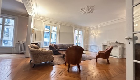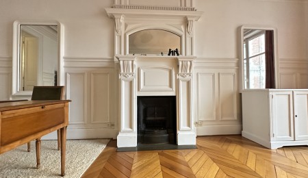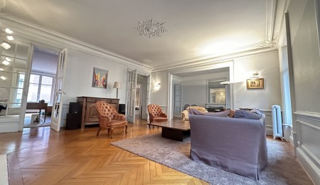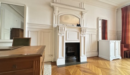 L’appartement, traversant et d’environ 166 m², offre des volumes rares et une luminosité constante. Le charme de l’ancien s’exprime pleinement à travers un parquet à chevrons, de superbes moulures, des cheminées en marbre et une hauteur sous plafond généreuse, conférant à l’ensemble une atmosphère à la fois noble et chaleureuse.