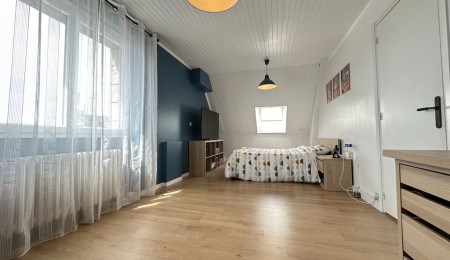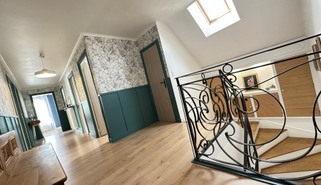 À l’étage, le potentiel se confirme : quatre chambres aux volumes confortables, deux bureaux (ou espaces nuit complémentaires selon vos besoins), ainsi qu’une pièce supplémentaire facilement aménageable en chambre viennent structurer un espace nuit idéal pour une grande famille ou un projet évolutif. Une salle d’eau et des sanitaires indépendants complètent cet étage.