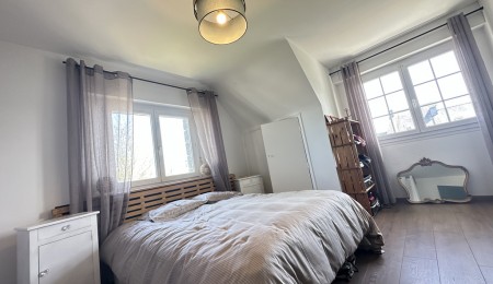 À l’étage, le volume se poursuit avec un vaste palier desservant plusieurs chambres aux belles surfaces, un bureau, un dressing ainsi qu’une salle d’eau et un WC. Un niveau idéal pour accueillir famille nombreuse, télétravail ou projets d’aménagement personnalisés.