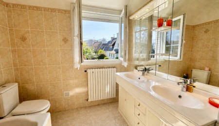 Très lumineuse, bien entretenue et stratégiquement située, cette maison aux volumes généreux séduira aussi bien une jeune famille qu’un projet de résidence secondaire ou de retraite, avec ses cinq chambres et ses points d’eau à chaque niveau. Un simple rafraîchissement intérieur suffira à lui redonner tout son éclat.