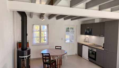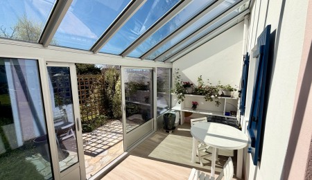 La maison développe environ 60 m² habitables (52 m² loi Carrez) et s’ouvre au rez-de-chaussée sur une belle pièce de vie lumineuse, où la cuisine moderne, aménagée et équipée, se fond harmonieusement dans l’espace salon. Un poêle à bois vient renforcer l’atmosphère chaleureuse et conviviale des lieux. Dans le prolongement, une véranda récente prolonge l’espace de vie vers le jardin , offrant un véritable cocon baigné de lumière, idéal pour les petits-déjeuners au soleil ou les fins de journée paisibles face à la nature.