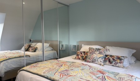 À quelques minutes des plages de sable fin du Pouldu, des bases nautiques, de l’école de surf, et du GR34, l’emplacement permet de vivre pleinement les activités du littoral : surf, paddle, voile, baignades, balades panoramiques… Un environnement maritime d’exception, très recherché pour sa qualité de vie. L’entrée ouvre sur un vaste espace de vie traversant, où le salon avec poêle à bois dialogue avec une salle à manger lumineuse donnant accès aux terrasses exposées sud. La cuisine américaine, généreuse et parfaitement organisée, poursuit cette ambiance chaleureuse tournée vers l’extérieur. La maison propose 5 chambres confortables. Deux se situent au rez-de-chaussée, accompagnées d’une salle d’eau et de WC indépendants. À l’étage, trois autres chambres prennent place dont une suite intimiste avec salle d’eau privative. Une seconde salle d’eau et des toilettes séparés complètent ce niveau.