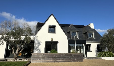 Clohars Carnoët à l’abri au fond d’une impasse, dans un silence rare, cette maison parfaitement entretenue offre un cadre de vie où l’espace, la lumière et le confort moderne se conjuguent naturellement. Avec 183 m² habitables auxquels s’ajoutent 120 m² de sous-sol complet, garage et cuisine d’été, elle profite d’un terrain paysagé d’environ 2500 m², intime et soigneusement structuré.