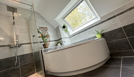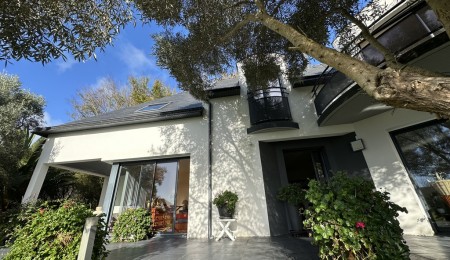 À l’étage, trois grandes chambres, une mezzanine modulable (bureau, coin lecture ou salle de jeux) et une spacieuse salle de bain équipée d’une baignoire jacuzzi et d’une douche viennent compléter ce niveau. Le tout s’inscrit dans un jardin clos et paysagé, sans vis-à-vis, où règnent calme et sérénité. Un grand garage vient parfaire l’ensemble avec son immense grenier aménageable. Une maison familiale d’exception, lumineuse, fonctionnelle et résolument tournée vers le confort et la détente.