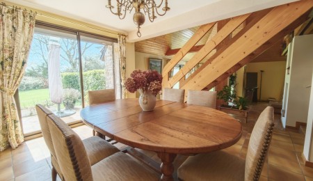 Une vaste entrée vous dirige sur le salon-séjour avec cheminée et son agréable plafond cathédrale offrant un volume remarquable sur une surface d’environ 50 m2, une cuisine aménagée et équipée, l’ ensemble s’ouvrant sur la terrasse et le jardin parfaitement exposé. Également en vie de plain pied une suite parentale avec balcon, chambre, bureau, salle d’eau et dressing ainsi qu’une deuxième chambre, wc.