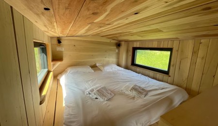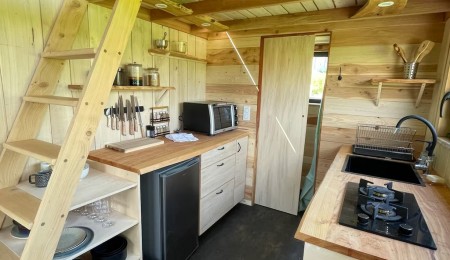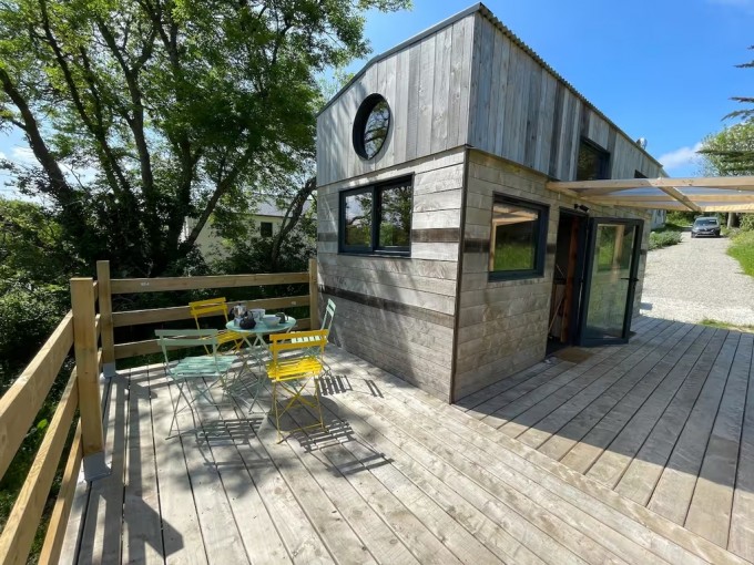Crozon Morgat – Laissez-vous séduire par ce cocon niché au cœur de la nature, à seulement dix minutes à pied des plages. Érigée sur un terrain constructible de 800 m², cette Tiny house allie simplicité, confort et mode de vie écoresponsable. Elle offre un espace optimisé avec une chambre en mezzanine dotée d’un lit double, une cuisine équipée avec plaques au gaz et mini-four, une salle d’eau avec douche et toilette sèche, ainsi qu’une pièce de vie chaleureuse agrémentée d’un poêle à bois. La terrasse spacieuse, ouverte sur la verdure, invite à profiter de repas en plein air dans un environnement paisible. Entre nature et océan, ce lieu singulier offre une expérience de vie au plus près des éléments, tout en bénéficiant des commodités de la station balnéaire. Un mode de vie minimaliste et apaisant, sans compromis sur le confort.