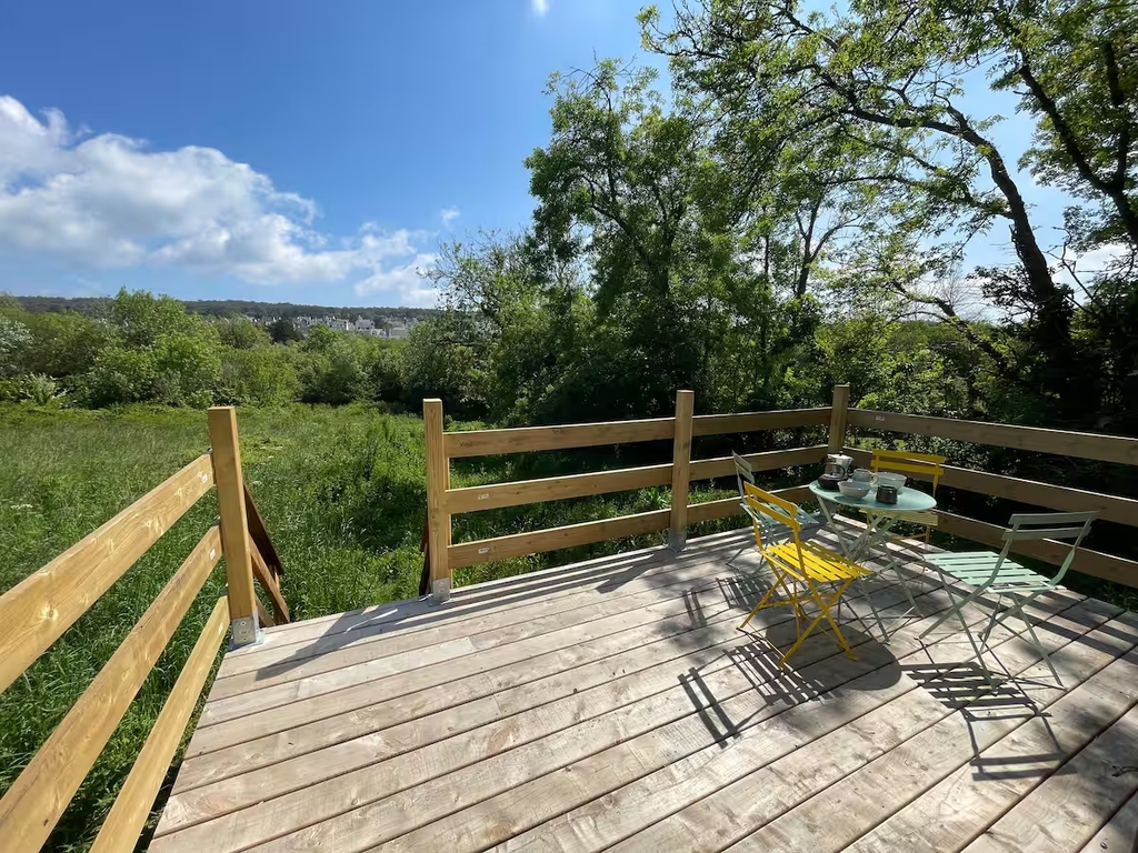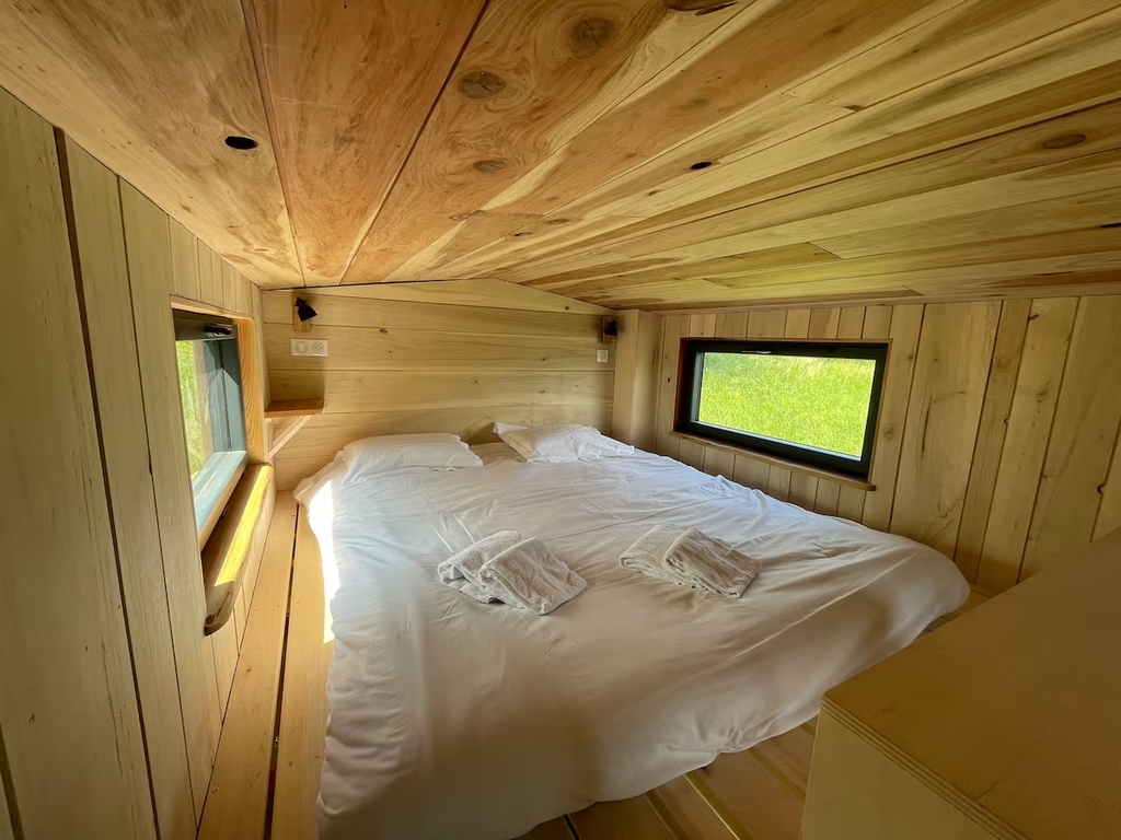 Crozon Morgat – Laissez-vous séduire par ce cocon niché au cœur de la nature, à seulement dix minutes à pied des plages. Érigée sur un terrain constructible de 800 m², cette Tiny house allie simplicité, confort et mode de vie écoresponsable. Elle offre un espace optimisé avec une chambre en mezzanine dotée d’un lit double, une cuisine équipée avec plaques au gaz et mini-four, une salle d’eau avec douche et toilette sèche, ainsi qu’une pièce de vie chaleureuse agrémentée d’un poêle à bois. La terrasse spacieuse, ouverte sur la verdure, invite à profiter de repas en plein air dans un environnement paisible. Entre nature et océan, ce lieu singulier offre une expérience de vie au plus près des éléments, tout en bénéficiant des commodités de la station balnéaire. Un mode de vie minimaliste et apaisant, sans compromis sur le confort.