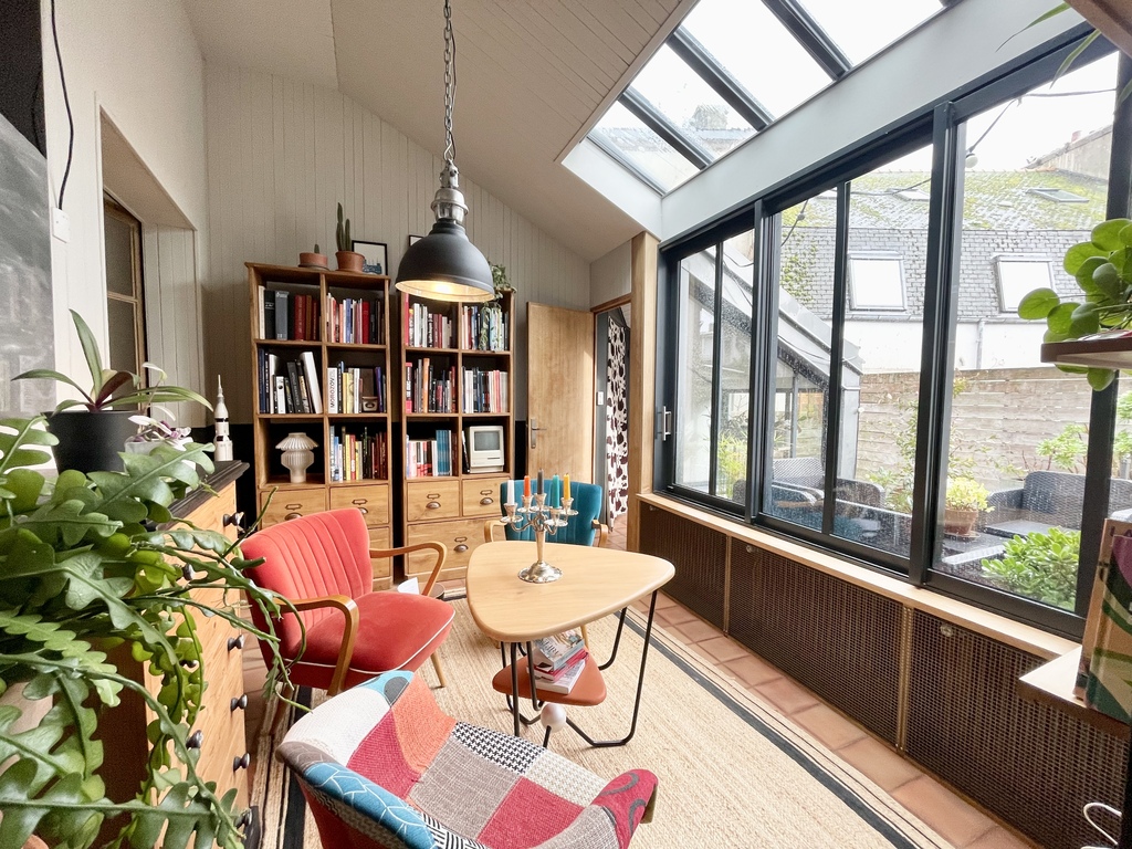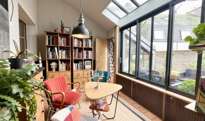 Exclusivité Agence– Douarnenez Maison coup de cœur par excellence, cette demeure de caractère se niche en plein centre de Douarnenez, au calme et à l’abri des regards. Édifiée en 1910, et entièrement rénovée avec un goût rare, elle conjugue avec élégance le cachet de l’ancien et une touche de contemporain, offrant des volumes généreux (200 m² habitables) répartis sur trois niveaux baignés de lumière.