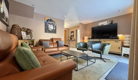 Dès l’entrée, une atmosphère accueillante s’installe : un vaste salon baigné de lumière, une cuisine dinatoire aménagée et équipée, une chambre avec salle d’eau et WC privatifs, un bureau ainsi qu’un WC indépendant complètent le rez-de-chaussée. À l’étage, la grande mezzanine fait office de salon dédié aux enfants, offrant un bel espace de vie supplémentaire. Trois chambres lumineuses, une salle de bain avec WC et une pièce actuellement aménagée en salle de sport viennent parfaire ce niveau.