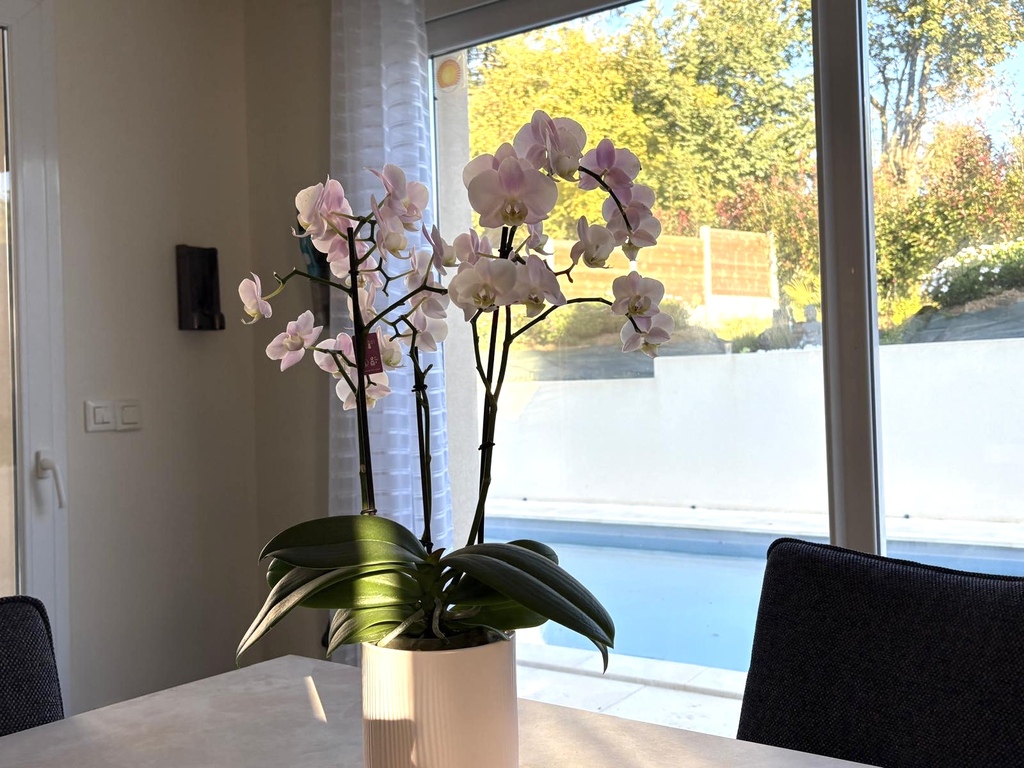 Côté extérieur, la grande terrasse prolonge harmonieusement les espaces intérieurs et conduit vers la piscine chauffée, idéalement exposée pour profiter du soleil. Le jardin, entièrement clos et soigneusement paysagé, garantit tranquillité et intimité, tandis qu’un garage vient compléter l’ensemble.