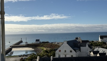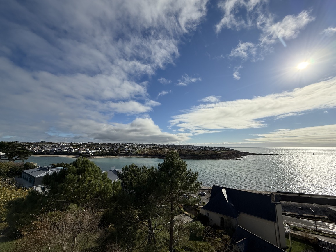 Exclusivité Agence !! Audierne situé face à la mer, dans une résidence calme et sécurisée avec digicode, cet appartement T3 d’environ 66 m² offre un cadre de vie exceptionnel, baigné de lumière et ouvert sur l’océan. Toutes les pièces bénéficient d’une vue mer, créant un spectacle permanent. L’appartement se trouve au troisième étage d’un immeuble sans ascenseur. Il se compose d’un salon-séjour lumineux, de deux chambres, d’une cuisine indépendante, d’une salle d’eau et de WC séparés. Un garage privatif est inclus avec la possibilité de stationner également devant. Une cave est à disposition pour le rangement. La résidence, bien entretenue, dispose également d’un local à vélos. La plage est accessible à pied, tout comme le port et les commerces d’Audierne.