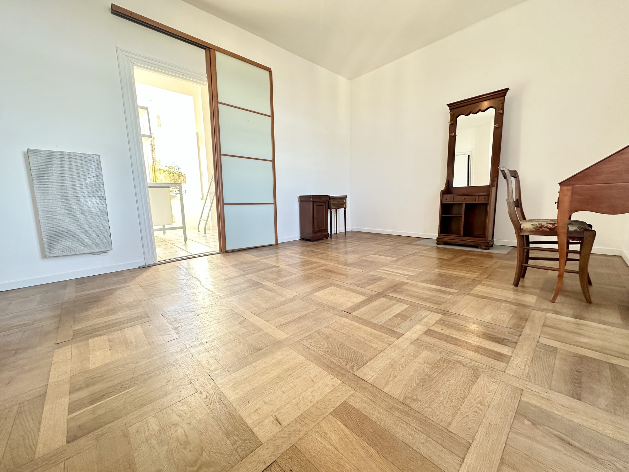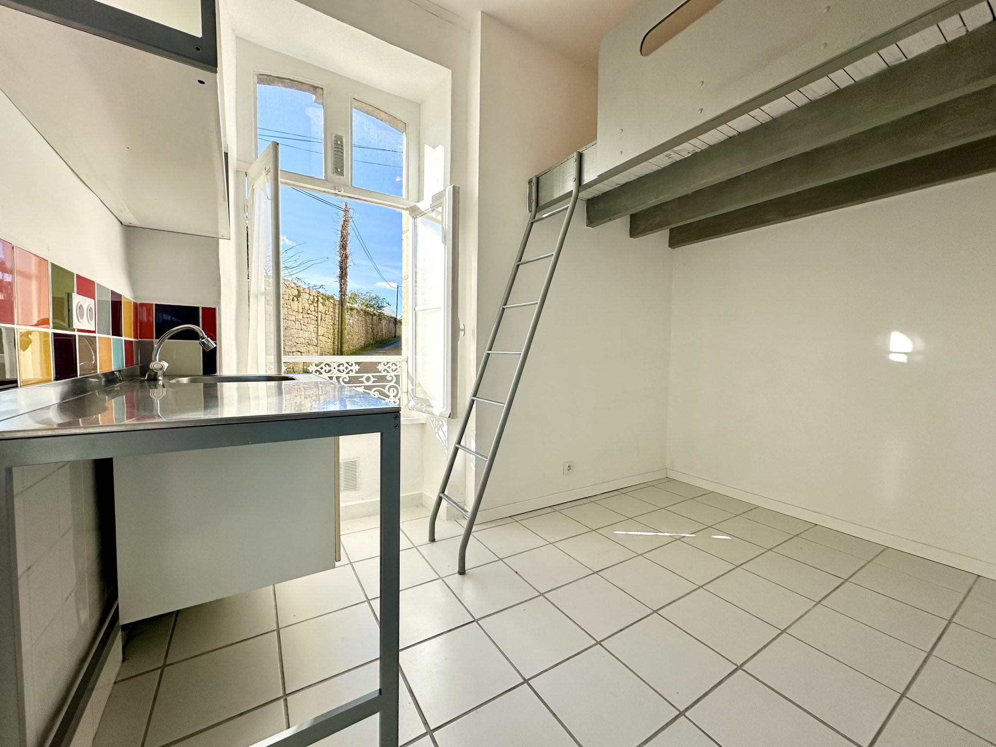 La pièce de vie de 17 m² séduit par son parquet ancien, sa très belle hauteur sous plafond et cette atmosphère chaleureuse propre aux bâtisses d’époque. Traversant, l’appartement profite d’une luminosité généreuse à chaque instant. Une mezzanine accueille l’espace nuit, optimisant intelligemment le volume, tandis que le coin cuisine s’intègre naturellement à l’ensemble.