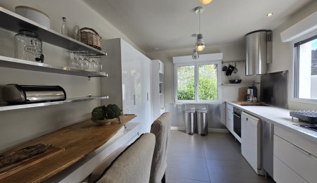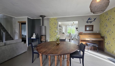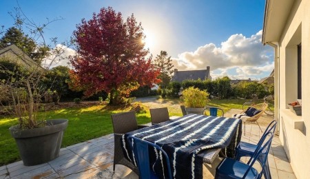 Exclusivité Agence. Plein Centre bourg, au Calme d’une impasse à l’abri des regards , découvrez cette maison familiale de 143 m² offrant de beaux volumes et un grand jardin champêtre de 1200m² baigné de Soleil; La maison offre en rez de chaussée un séjour (45m²) avec cuisine aménagée et équipée et un poêle à bois étendu d’une véranda donnant sur la terrasse exposée sud ouest, 3 chambres et une salle d’eau permettant une vie essentielle de plain pied, un grand garage (45m²); A l’étage: une grande mezzanine salle de jeux (18m²)desservant une chambre complémentaire et une suite parentale avec salle de bain et wc (21m²); Un emplacement privilégié au coeur du village, à seulement quelques coup de pédales des commerces et des plages de l’Ile Tudy et Sainte Marine
