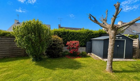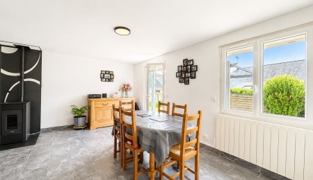 Exclusivité Agence. Quimper sud-Est, cette maison de 1985 située dans le quartier de Ergué Armel est composée d’une entrée avec accès à la cuisine aménagée et équipée semi-ouverte, d’une très belle pièce de vie baignée de lumière d’une surface d’environ 35m2 et récemment équipée d’un poêle à granules. De la baie vitrée du salon vous accédez directement à la terrasse carrelée et au jardin entièrement clos tout en profitant de la belle exposition. Sur ce niveau, vous trouverez également une chambre avec wc.