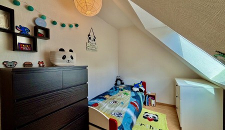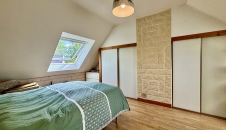 L’étage se compose d’un palier, de deux chambres avec rangements, d’une salle d’eau et d’un wc indépendant. Garage d’environ 23m2 avec grenier au dessus et joli jardin paysagé. Isolation par insufflation réalisée en 2024, velux de l’étage récents, huisseries récentes avec volets électriques, poêle à granules installé en 2023 et cuisine en 2020.