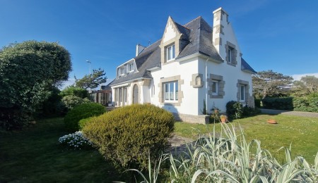 Exclusivité Agence. Pays bigouden sur la commune du GUILVINEC, Vue Mer de toutes les pièces et accès direct à la Plage de Men Meur. Découvrez cette Vaste (183 m² de surface) Maison de Famille bâtie en 1972 et offrant un panorama sur la Plage, les étocs, le phare d’Eckmühl et la pointe de Men Meur; Au rez-de-chaussée une entrée majestueuse avec son escalier de marbre blanc, un séjour sur parquet avec cheminée, une cuisine, une chambre, un bureau (possibilité salle d’eau), un wc, une buanderie, une entrée de service et un garage et en sous-sol, chaufferie et cave à vin; A l’étage le palier dessert une suite parentale sur parquet avec dressing et salle de bain, 2 chambres, 1 salle d’eau, 1 wc, un grenier aménagé avec dégagement pour créer un dortoir complémentaire; Le jardin de 880m² est entièrement clos et paysagé à l’abri des regards sans masquer la Vue sur La Plage; Une Chaleureuse Maison cossue à l’emplacement tant recherché A investir sans attendre!