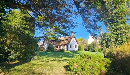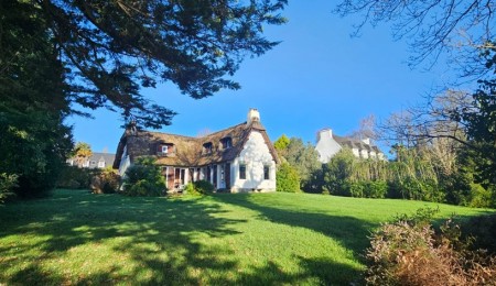 Exclusivité Agence, sur la commune de LA FORET FOUESNANT Située en première ligne offrant une Vue Panoramique Sur la Baie découvrez cette magnifique Maison Cossue implantée dans un grand Jardin Clos de 2360m² sans aucun vis à vis. Dans le Quartier le plus convoité, à quelques encablures du port et du golf cachée derrière son grand portail, la maison se dévoile avec sa toiture de Chaume et son double garage indépendant;