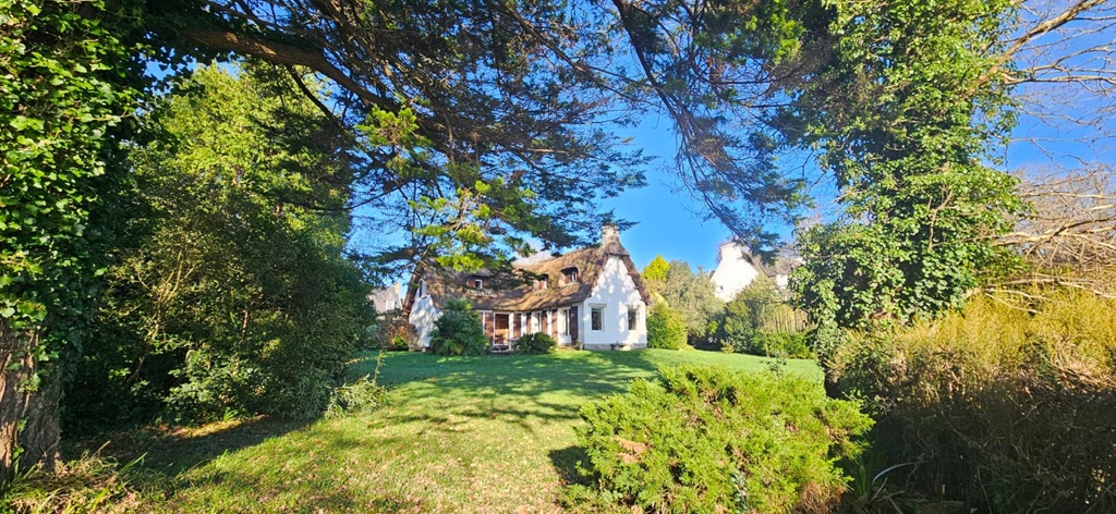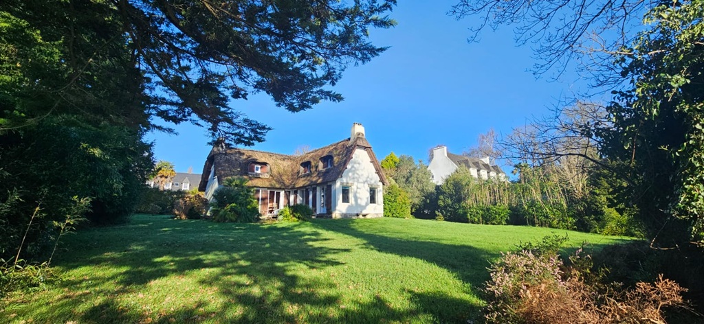 Exclusivité Agence, sur la commune de LA FORET FOUESNANT Située en première ligne offrant une Vue Panoramique Sur la Baie découvrez cette magnifique Maison Cossue implantée dans un grand Jardin Clos de 2360m² sans aucun vis à vis. Dans le Quartier le plus convoité, à quelques encablures du port et du golf cachée derrière son grand portail, la maison se dévoile avec sa toiture de Chaume et son double garage indépendant;