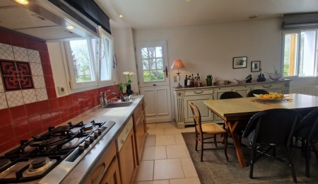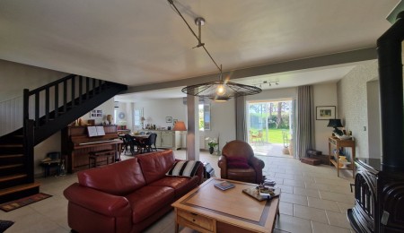 La maison, lumineuse et chaleureuse, développe une distribution fonctionnelle de 130 m². Au rez-de-chaussée nous retrouvons une vaste et agréable pièce de vie baignée de lumière ouverte sur la véranda entièrement vitrée, offrant par sa transparence un panorama à couper le souffle! La cuisine aménagée et équipée ouverte est dotée d’une une arrière-cuisine, ce qui nous offre un espace de rangement supplémentaire. Pour une vie parfaite de plain pied une chambre avec salle de bain privative, des toilettes indépendantes complètent ce niveau .