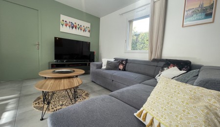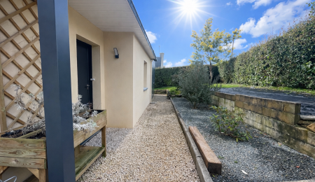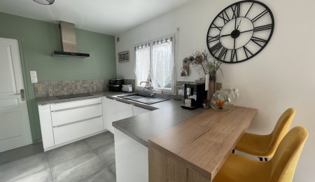 Exclusivité Agence. A seulement 10 mn de Quimper sur la commune d’Ergué Gabéric, dans un quartier résidentiel , au calme , en impasse, venez à la découverte de cette élégante maison contemporaine de 2001 aux prestations soignées et à la décoration harmonieuse , bénéficiant d’une rénovation qualitative complète et récente . Elle offre une surface confortable de 105 m² au sol (95 m² loi Carrez) offrant une entrée avec rangements, une lumineuse pièce de vie avec son salon agrémenté de son poêle à bois créant une atmosphère chaleureuse , une cuisine ouverte aménagée et équipée résolument moderne , l’ensemble donnant accès à sa terrasse et son jardin clos arboré exposé sud et Ouest . Véritable et indispensable vie de plain pied avec sa suite parentale au RDC (chambre et salle d’eau ), un w.c