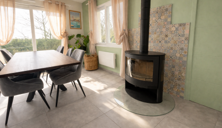 Type de chauffage : électrique + poêle à bois