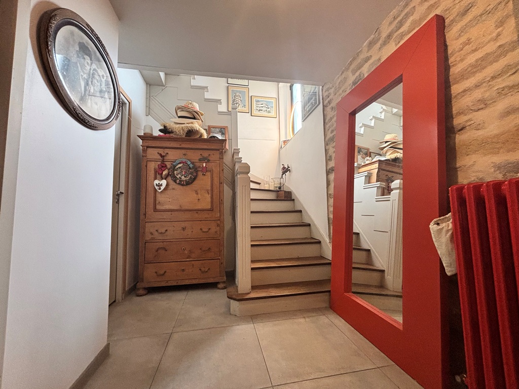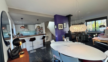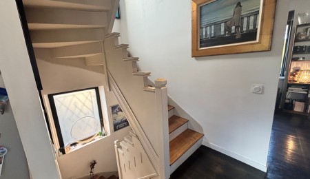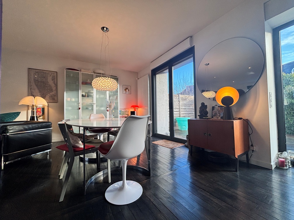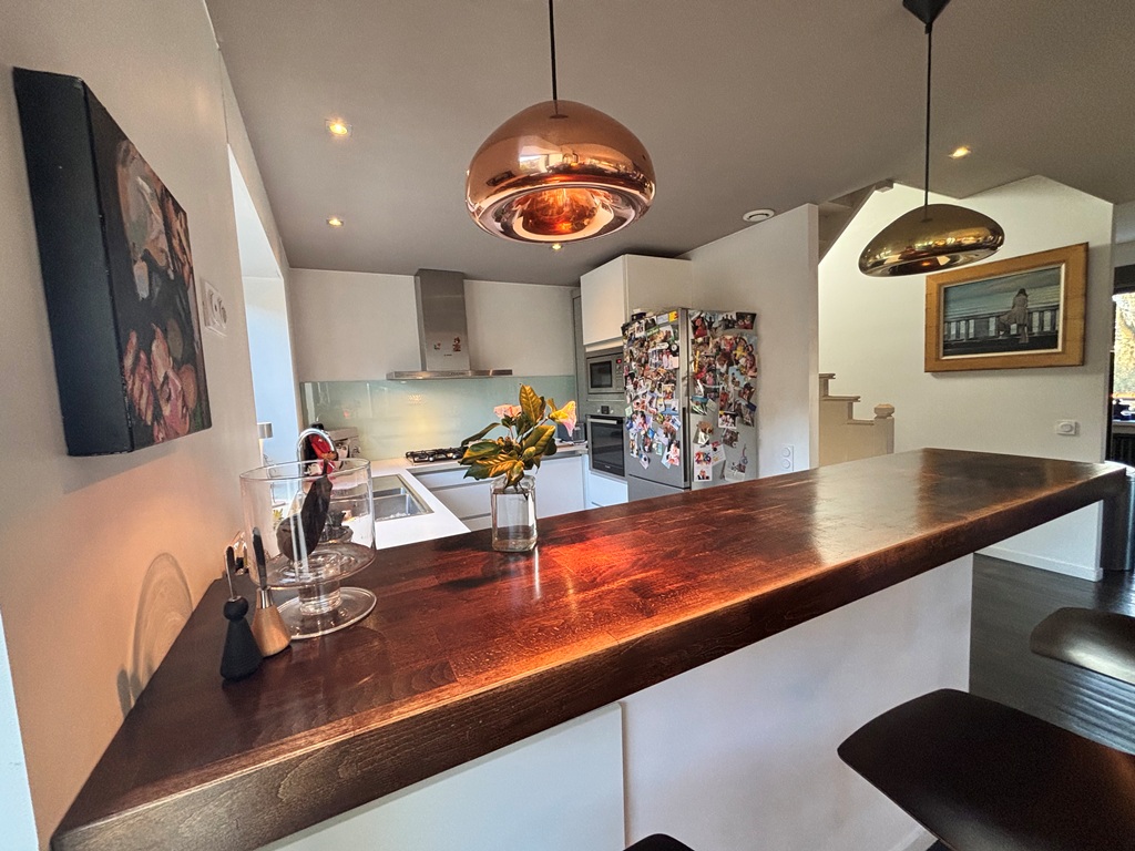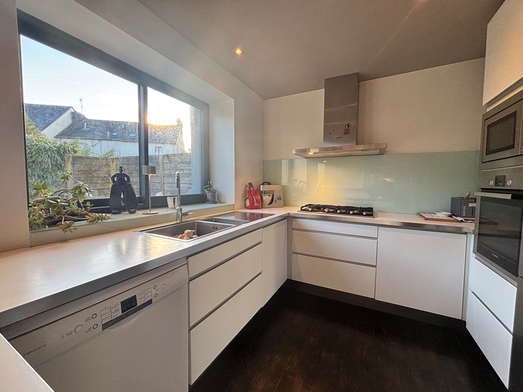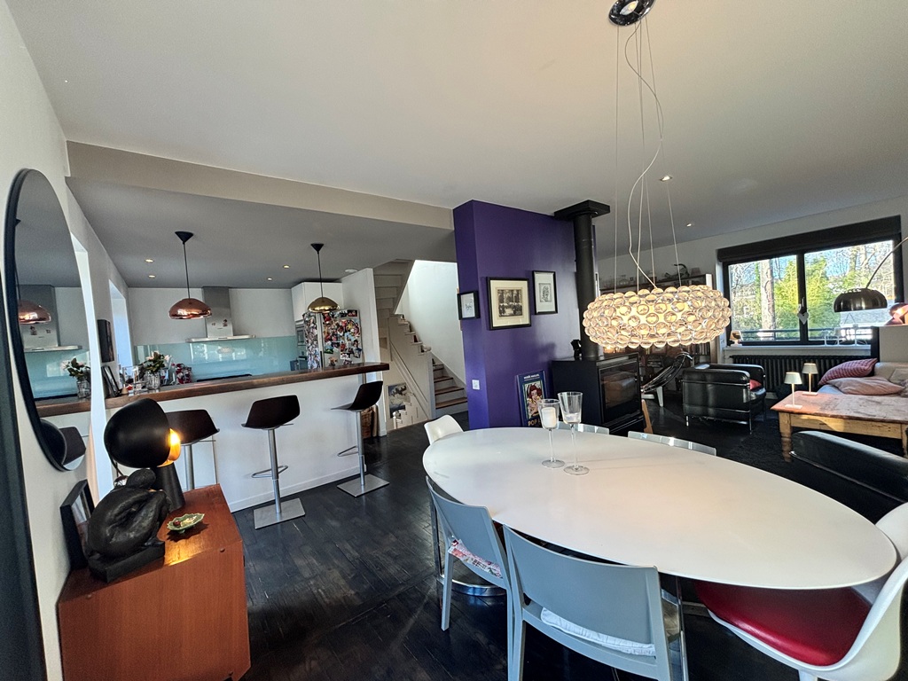 Exclusivité Agence. Quimper Centre Ville à Pied pour Chaleureuse Maison de Ville offrant confort, Modernité et authenticité. Située à quelques encablures du Cinéville et à seulement 8 min à pied des rues pavées et des nouvelles halles. Bâtie dans les années 1950 et entièrement rénovée en 2013 offrant une surface de 120 m² répartie sur 3 niveaux. Hall d’entrée desservant un escalier, w-c, garage/buanderie. A l’étage une belle pièce de vie en open-space Baignée de lumière traversante, cuisine A/E l’ensemble communiquant sur la terrasse exposée Plein Sud, coin cheminée et bureau séparé. Au dernier étage un espace nuit offrant deux chambres dont une avec salle d’eau et une suite parentale avec dressing intégré et salle d’eau privative, w-c. Jardin clos de 250 m² env. Idéal pour les amoureux de la vie citadine EMPLACEMENT 1er choix proche des commerces.
