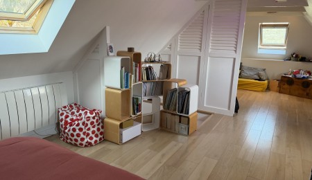 Une entrée privée au bout d’une venelle, passé le portillon venez découvrir cette maison à la parfaite exposition offrant une belle pièce de vie BAIGNEE DE LUMIERE avec cheminée, cuisine aménagée à office dînatoire, l’ensemble communiquant sur une magnifique terrasse en bois exposée plein Sud. A l’étage un espace parental avec chambre agrémentée d’un dressing et d’une salle d’eau privative et w-c, une seconde chambre, salle d’eau avec w-c. Sous mansardes, un espace offrant du charme (poutres apparentes) avec vaste chambre agrémenté d’un coin lecture/bureau.