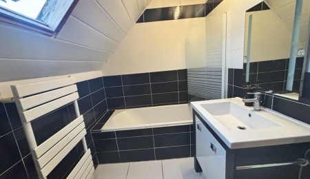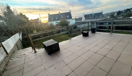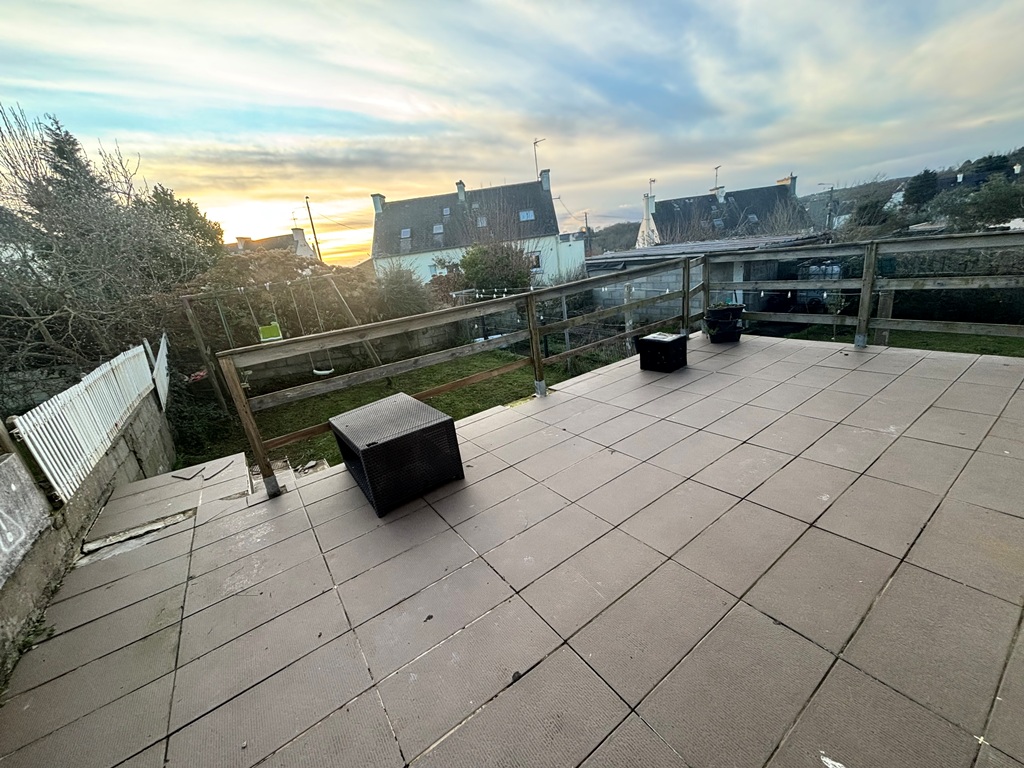 Exclusivité Agence. Quimper Ouest Penhars, au calme fort potentiel pour cette lumineuse maison de 85 m² en réseau bus. Un sas d’entrée ouvre sur un couloir desservant un salon-séjour traversant de 22 m², une cuisine séparée donnant accès à la terrasse à la belle exposition, salle d’eau avec wc. L’étage dispose de 3 chambres, salle de bain avec wc. jardin clos de 400 m². Fort Potentiel!!