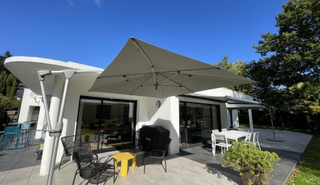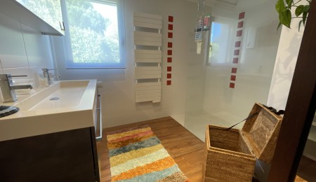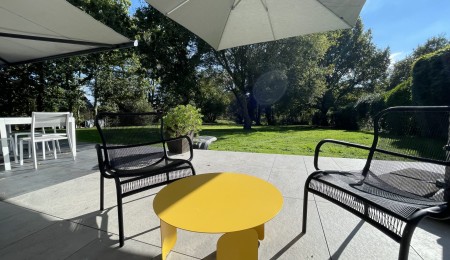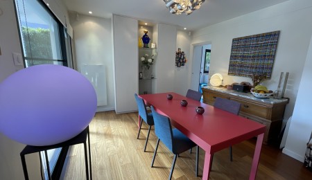 Passé le portail en aluminium , on découvre une allée élégante menant à la maison , on est tout de suite séduit par la beauté des extérieurs et la sérénité des lieux . Un vaste hall d’entrée avec rangements nous amène sur une lumineuse pièce de vie baignée de lumière, avec ses larges baies vitrées qui s’ouvrent sur sa vaste terrasse et son majestueux jardin . Des matériaux de qualité ( parquet massif ..), insert à bois confèrent au salon/salle à manger une atmosphère à la fois chaleureuse et contemporaine. La cuisine attenante aménagée et équipée offre un espace de vie fonctionnel , une arrière cuisine/cellier vient parfaire le coté pratique . L’espace nuit idéalement agencé est composé de 4 chambres confortables dont 3 donnant accès à la terrasse , un bureau , deux salle d’eau et W.C . Un indispensable garage vient compléter ces prestations de qualité ainsi qu’un abri de jardin .