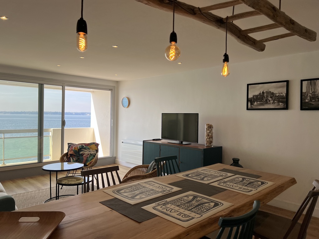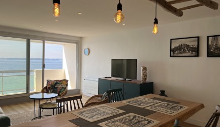 Exclusivité Agence. Dans un immeuble Art Déco “Résidence le Phare” Vue Panoramique sur L’Océan pour cet Appartement T3 de 70 m² entièrement Rénové Haute Couture dans un “esprit Côté ouest“. Un hall d’entrée offrant une distribution des plus homogènes. Deux chambres dont une avec placard, salle d’eau agrémentée d’une buanderie, une magnifique pièce de vie en open-space tel un tableau vivant sur L’Océan avec cuisine A/E et Balcon pour profiter du soleil couchant. Cave et place de Parking en sous sol. A Découvrir sans plus attendre pour un investissement sécuritaire face à la mer Bleue