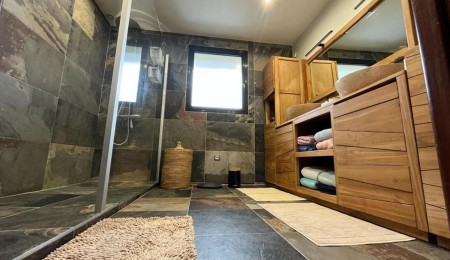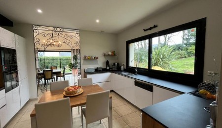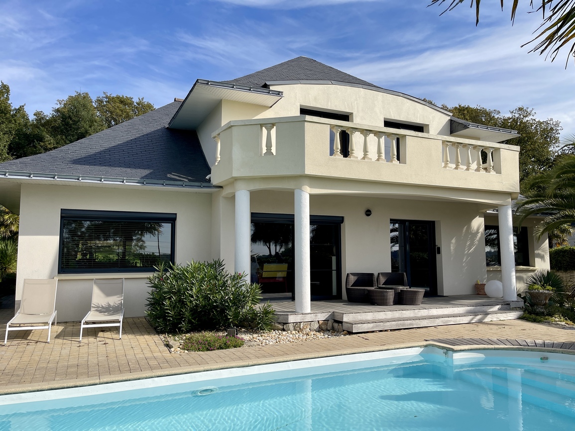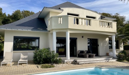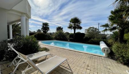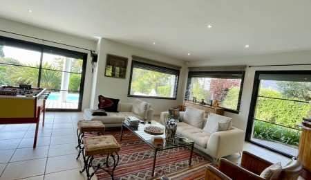GUIDEL, Emplacement RARE pour cette extraordinaire et charismatique villa contemporaine (2004) de 240m2 au style ‘floridien” qui se caractérise par une façade imposante dont l’ abondante fenestration permet de mieux profiter de l’ensoleillement naturel et du panorama. Sa prestance et sa désinvolte élégance dans cet univers paisible et verdoyant à proximité directe des commerces et des accès aux plages en font une propriété d’exception. Entièrement rénovée en 2018 avec des matériaux de grande qualité et une décoration raffinée, le design intérieur affiche style et caractère en explorant les volumes avec brio. L’entrée donne le ton et s’ouvre sur une extraordinaire pièce de vie de 80 m² digne des plus beaux loft new-yorkais qui se prolonge en direction de la piscine et d’un magnifique terrain clos et paysagé de 2 300 m² qui nous invite à la détente et la sérénité… une cuisine A/E aux lignes moderne et épurée, une indispensable suite parentale avec salle de bain, une deuxième chambre et un WC complètent ce niveau.