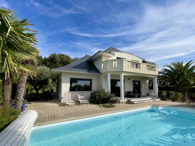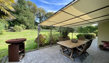 L’étage sur parquet bois dessert une grande mezzanine baignée de lumière avec une vue dominante sur le terrain arboré et distribue deux vastes chambres avec rangements intégrés et accès balcon, une salle de bains et un WC. Pour l’aspect pratique: un cellier et un sous-sol complet offrant stationnement, cave à vin, salle de sport aménagée et stockage pour les indispensables jouets nautiques vient parfaire cet ensemble qui répondra aux attentes des clients les plus exigeants. Chauffage géothermie par le sol.