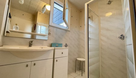 L’étage accueille un palier desservant une chambre et une nurserie ou petite chambre d’enfant sous-combles ainsi qu’un bureau avec une pièce attenante idéal pour un espace de rangement. Une salle de douches avec w.-c. vient parfaire ce niveau, offrant un potentiel certain pour une famille en quête d’espace.
