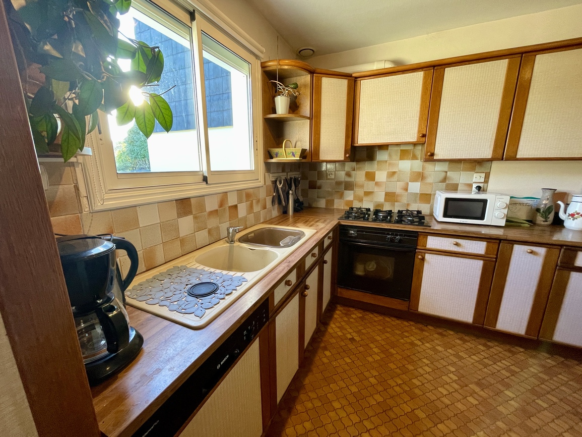 À Guidel, au calme d’une impasse recherchée à seulement 500 mètres des commerces, cette maison de 1976 propose un cadre de vie privilégié pour ceux qui souhaitent tout faire à pied. La parcelle paysagée de 600 m², offrant terrasse, jardin intime et un cabanon, crée une atmosphère familiale et sereine dès l’arrivée.