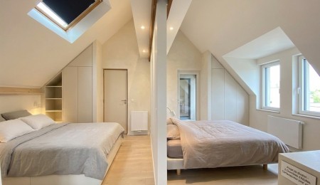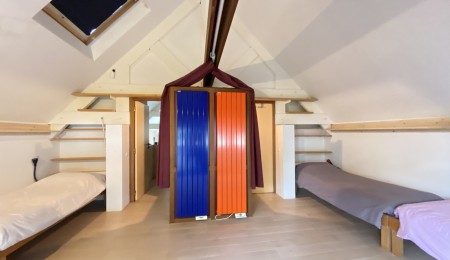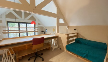 À l’étage, le palier dessert une mezzanine ouverte, idéale pour un espace détente ou bibliothèque. Un dortoir aux beaux volumes accompagné d’une salle d’eau et d’un WC séparé. Une véranda lumineuse offre un espace supplémentaire.
