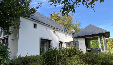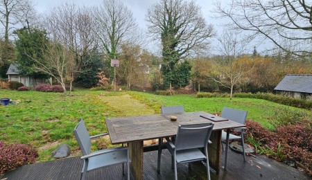À seulement quelques pas du bourg de La Forêt-Fouesnant , cette maison d’architecte de 2003 s’inscrit dans un environnement recherché, implantée sur une parcelle de 1 500 m², elle séduit dès l’arrivée par ses volumes et sa luminosité. Une pièce de vie en plafond cathédrale aux volumes généreux, spacieuse et chaleureuse elle s’organise autour d’une cheminée, cuisine attenante A/E offre une belle continuité avec les espaces de réception. Une chambre et sa salle de bain attenante ainsi qu’un w-c permettent une vie de plain pied.