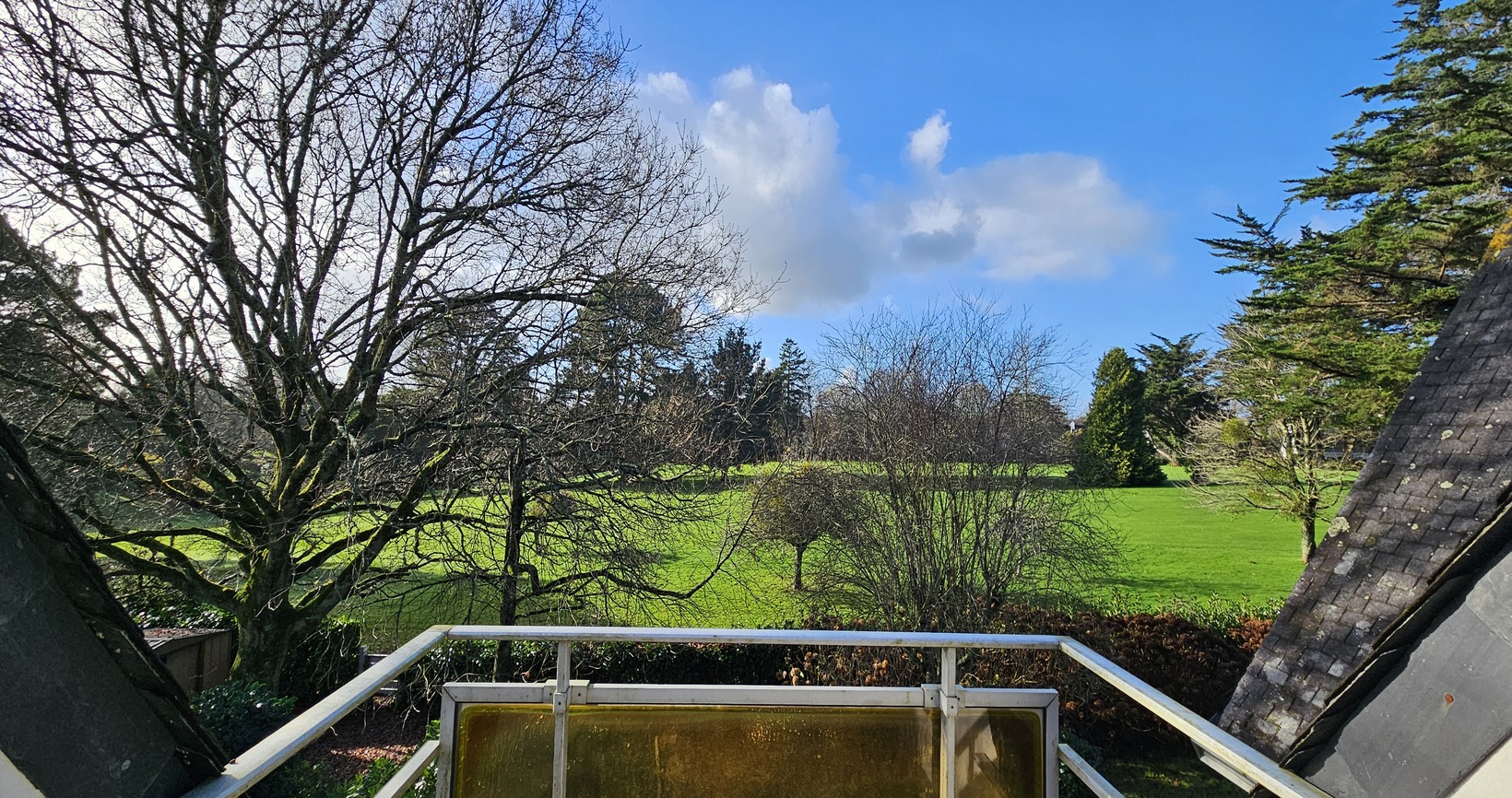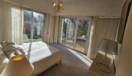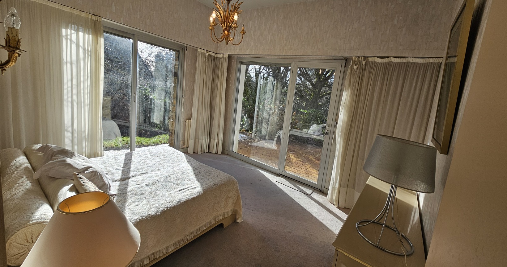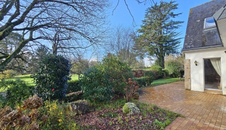 À seulement quelques pas du bourg de La Forêt-Fouesnant , cette maison propriété de 1979 s’inscrit dans un environnement recherché, avec une vue ouverte et apaisante sur le golf. Implantée sur une parcelle arborée de 1 100 m² exposée sud-ouest, elle séduit dès l’arrivée par ses volumes, sa luminosité.