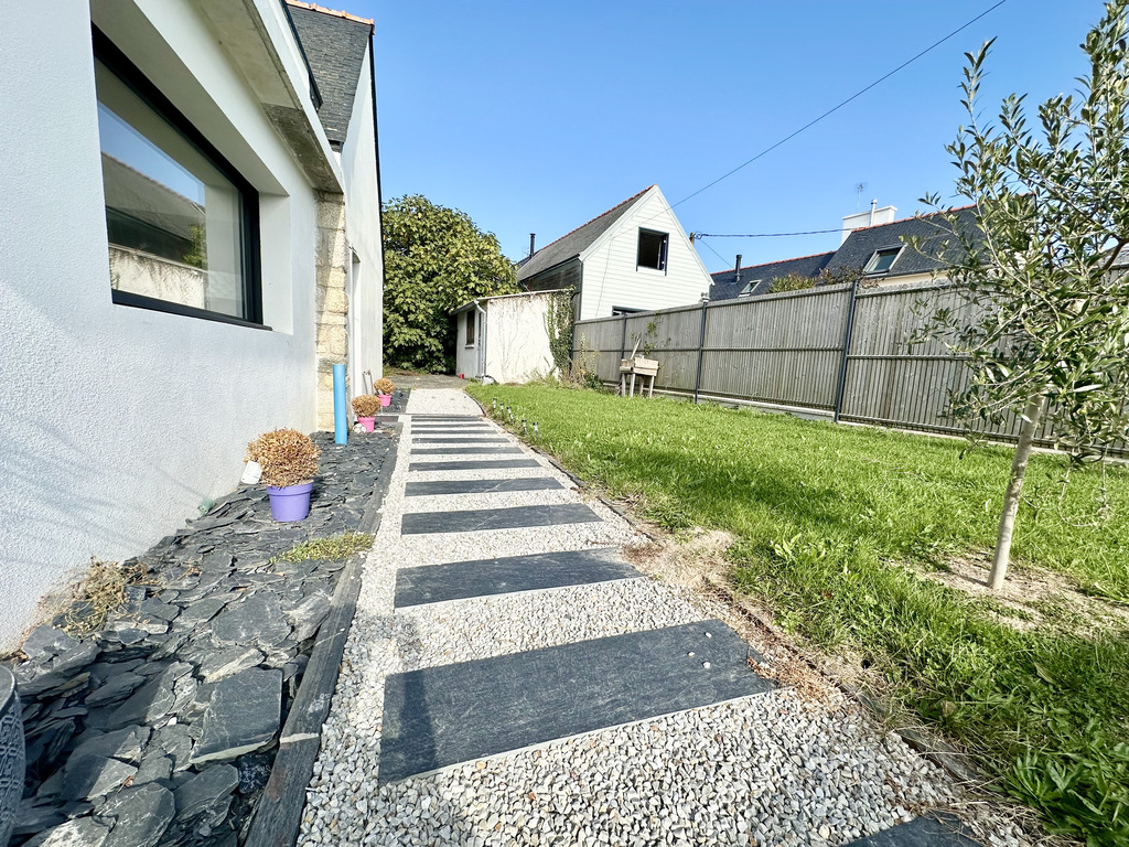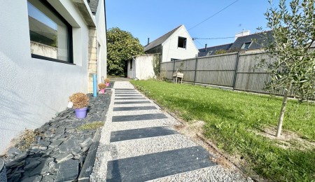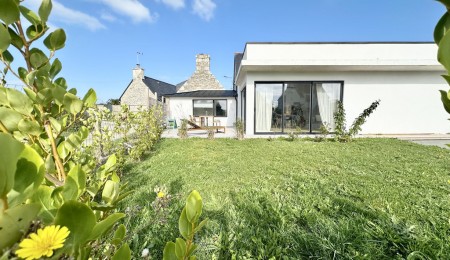À Loctudy, à seulement quelques pas des plages, cette maison ancienne rénovée avec goût en 2023 (sous garanties décennales) combine le charme de l’ancien et le confort contemporain dans une ambiance familiale.