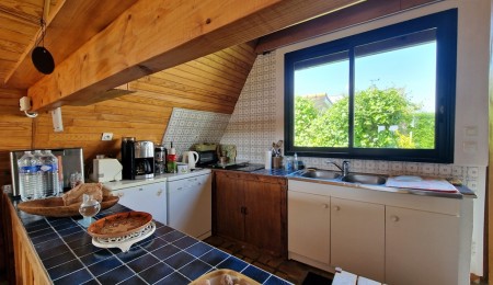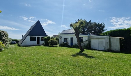Exclusivité Agence. Sur la commune de LOCTUDY, Dans une impasse Courtisée de la Corniche de PENHADOR, La plage de l’autre côté de la rue, découvrez cette maison originale de 82 m² offrant une distribution très pratique pour des vacances idéales; En rez de Chaussée, la belle pièce de vie ouverte sur 2 jardins est très conviviale avec sa cuisine ouverte et sa grande baie vitrée plein sud, une chambre et une salle d’eau pour une vie essentielle de plain-pied, A l’étage: 3 chambres dont une offrant une belle Vue sur la Mer ! Une Annexe à rénover en cuisine d’été ou stockage des jouets nautiques et autres effets nécessaires au jardin; Le jardin de 725 m² clos de haies est très intime et sans vis à vis pour des soirées inoubliables au retour de la plage!