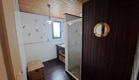 Exclusivité Agence. Pays Bigouden à 300 pas du phare d’Eckmühl, cette maison d’habitation des années 1930 d’une surface habitable d’environ 104 m2. Comprenant au rez de chaussée : cuisine, séjour-salon, wc, 1 chambre, 1 salle d’eau, garage. Au 1er étage : 1 chambre avec mezzanine, 1 bureau, 1 chambre avec comble aménagée, wc, grenier sur garage. L’ensemble sur un terrain de 550 m².