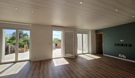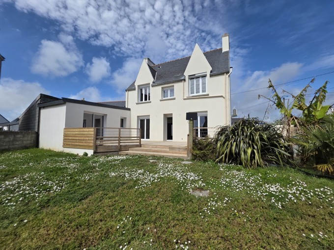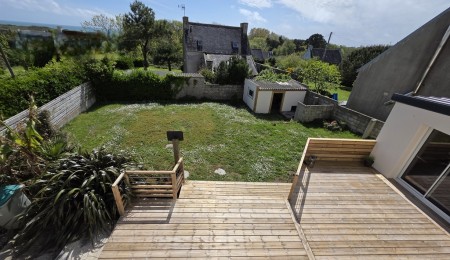 Sur la commune de PENMARC’H, La plage à pied pour cette belle maison aux allures bigoudènes des années 50 entièrement rénovée offrant un emplacement idéal; Au rez de chaussée l’entrée dessert un beau salon séjour avec cuisine aménagée et équipée s’ouvrant sur la terrasse de bois exposée plein sud avec une vue sur la pointe du Guilvinec, une chambre avec douche et un bureau pour une vie confortable de plain pied, garage; Au premier étage 4 belles chambres sur parquet massif dont 2 ont une Vue panoramique sur la Mer; Combles à aménager au besoin; un appentis pour ranger le mobilier de jardin, les vélos etc.. Le jardin clos est sans vis à vis offrant une surface de 500m² facile d’entretien; 2 places de parking extérieurs complémentaires; Une Maison de Vacances ou principale à investir sans attendre ! Posez vos meubles!!