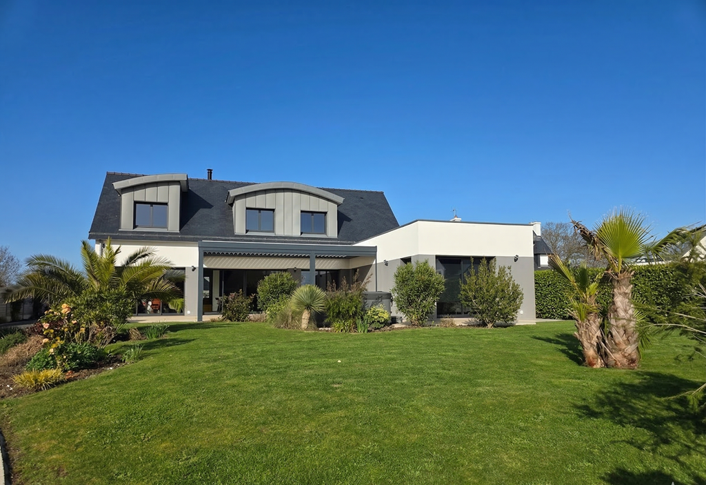 Uniquement dans notre Agence. Entre terre & Mer sur la commune de Plobannalec-Lesconil, à 5 minutes des plages, coup de Coeur assuré pour cette parfaite maison d’architecte de 2023 (sous garantie décennale jusqu’en 2033 ) pour une surface de 178m² habitables (243 m² surface utile) offrant des volumes pensés et une finition “haute couture”
