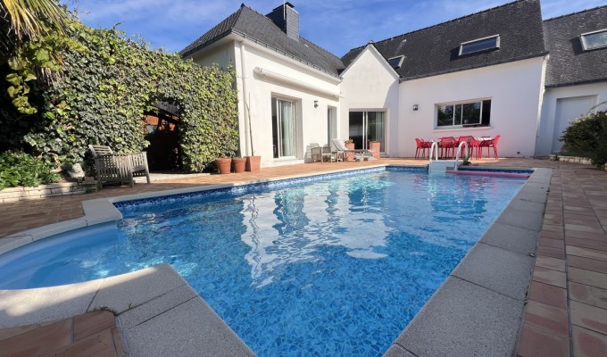 Ploemeur, à quelques coup de pédales des plages de Lomener et à proximité immédiate des commodités du bourg (écoles, commerces, pharmacie…), découvrez cette intemporelle maison contemporaine construite en 2000 et nichée au coeur d’un quartier résidentiel.