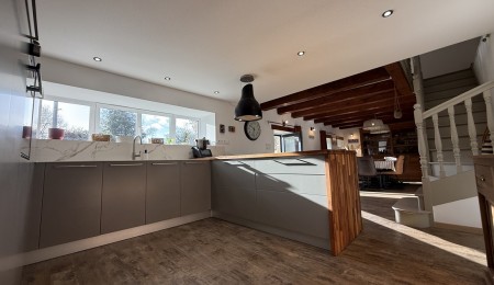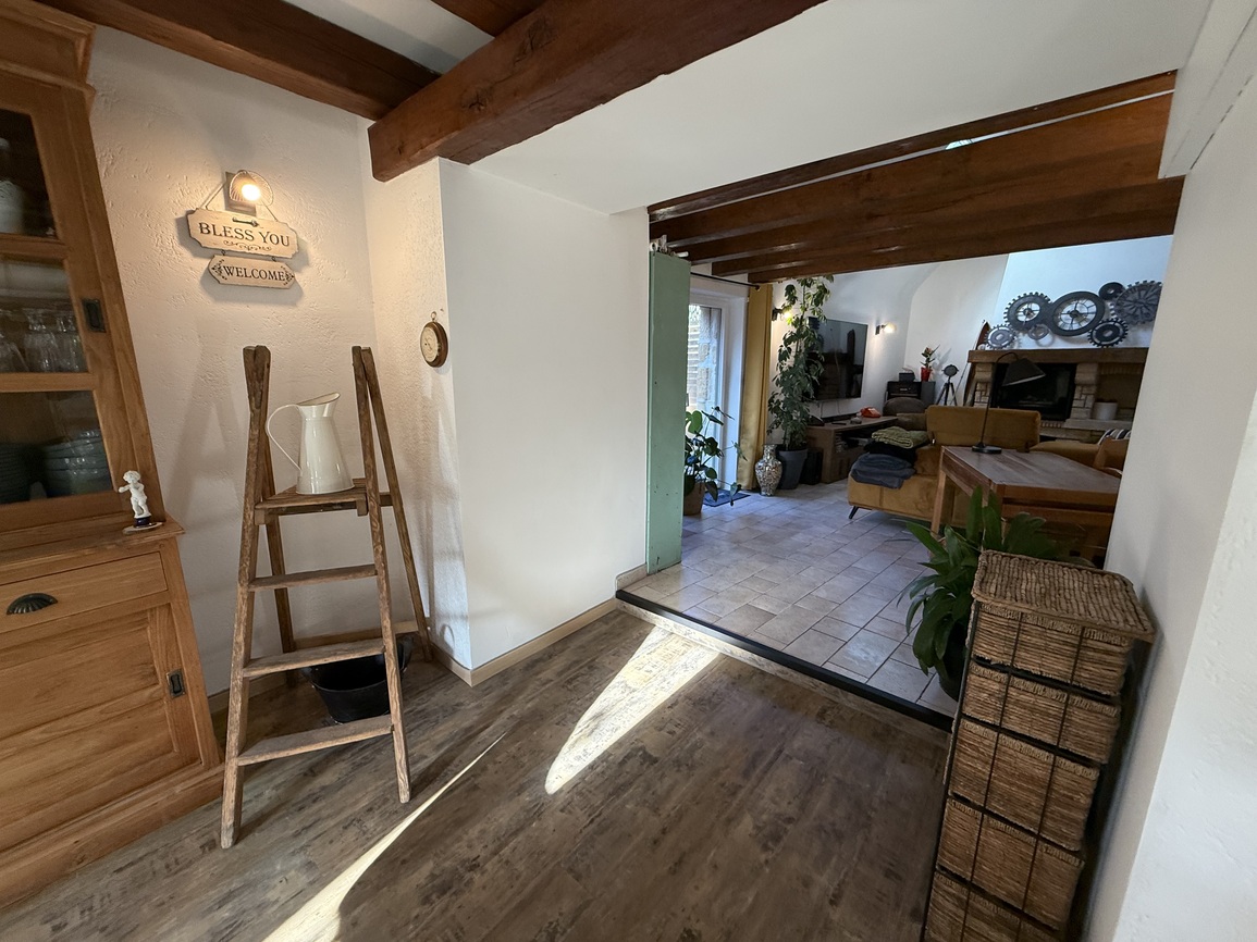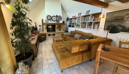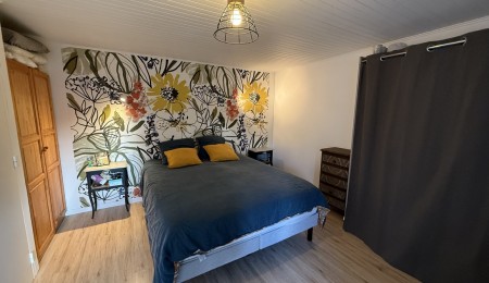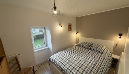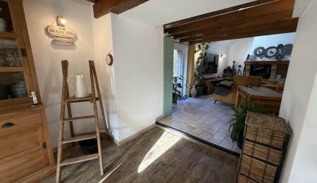 La maison principale séduit par sa belle pièce de vie avec son poêle à bois ainsi qu’une cuisine aménagée et équipée, une buanderie, une salle de bain et deux chambres à l’étage complétées par un bureau et un WC. Ainsi qu’une terrasse et un jardin privatif avec un petit bassin à poisson, deux puits, un garage et un abris de jardin.